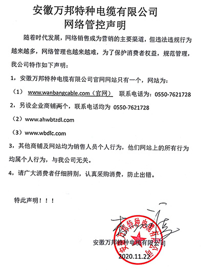鄭重聲明:安徽萬邦特種電纜有限公司官方網站為:www_wanbangcable_com.blackteashop.com.cn,除此之外無任何子網站或合作網站,其余均為假冒偽劣。電話:0550-7621728 13485756353 地 址:安徽省天長市滁州高新技術產業開發區經四路29號